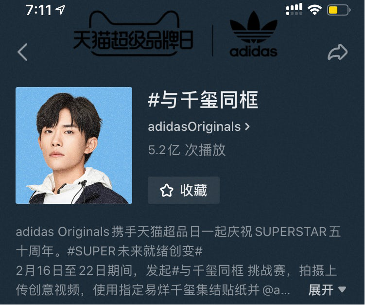 例如在短视频及社交媒体平台,天猫和阿迪达斯Adidas针对宅在家中的人群,发起#与千玺同框#的抖音挑战赛,抖音挑战赛共吸引了5.2亿次播放量。