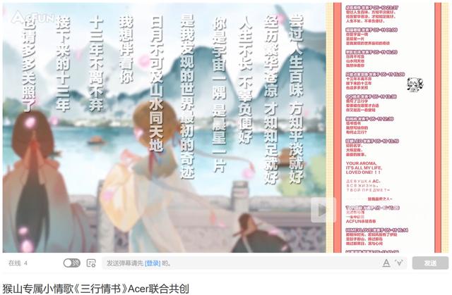 随后,A站官方将这些“情书”制成歌词,定制成一首猴山专属小情歌《三行情书》,回应Acer们的创作热情。