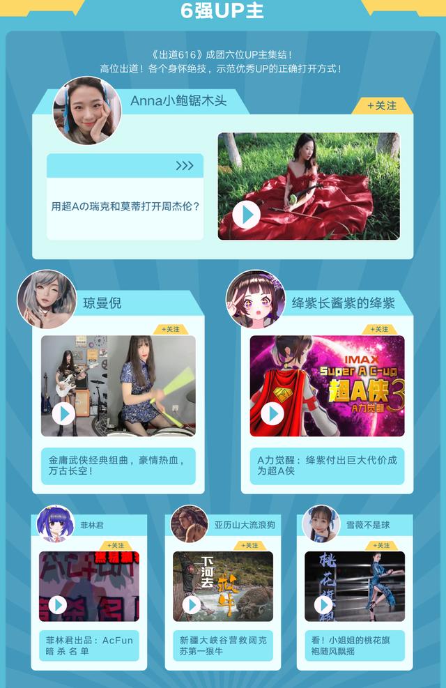 一方面,A站着力扶持各成长阶段的UP主,此次“出道616”活动即是面向粉丝在一万以下的UP主群体。再加上此前的“阿普专修学院”,通过给予UP主相关培训课程及优先曝光推荐,加速新人UP主成长。