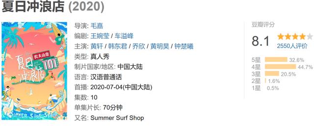 敢于尝试冲破极限的年轻人,在这些综艺中总是能看到自己的影子。豆瓣上,网友也给《夏日冲浪店》这档新综艺打出8.1的高分。