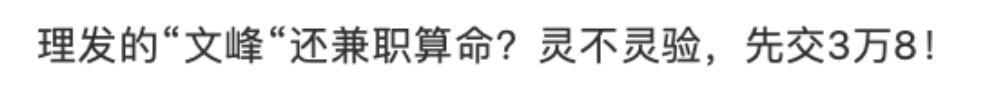 每家文峰店门口都要立一个 " 洗剪吹各十元 " 的招牌," 各 " 字写得蚂蚁一样小,很多人不仔细看都发现不了这个字,以为洗剪吹只要十元。等你剪完了,才发现要三十元。