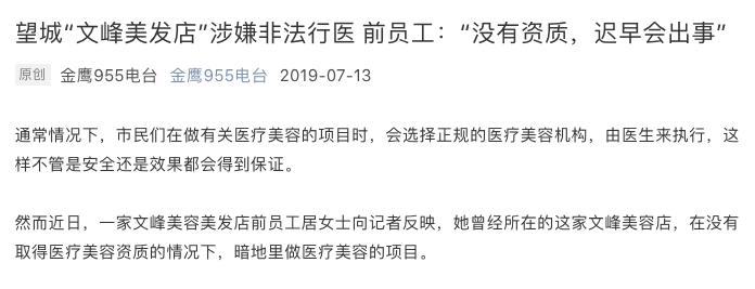 在这样全员销售的模式下,近几年,文峰传出的新闻,大多数负面,除了退卡难,还有 " 不小心 " 给客户喝 84 消毒液、卖假药、花 1000 元治扁平疣等奇葩事件。