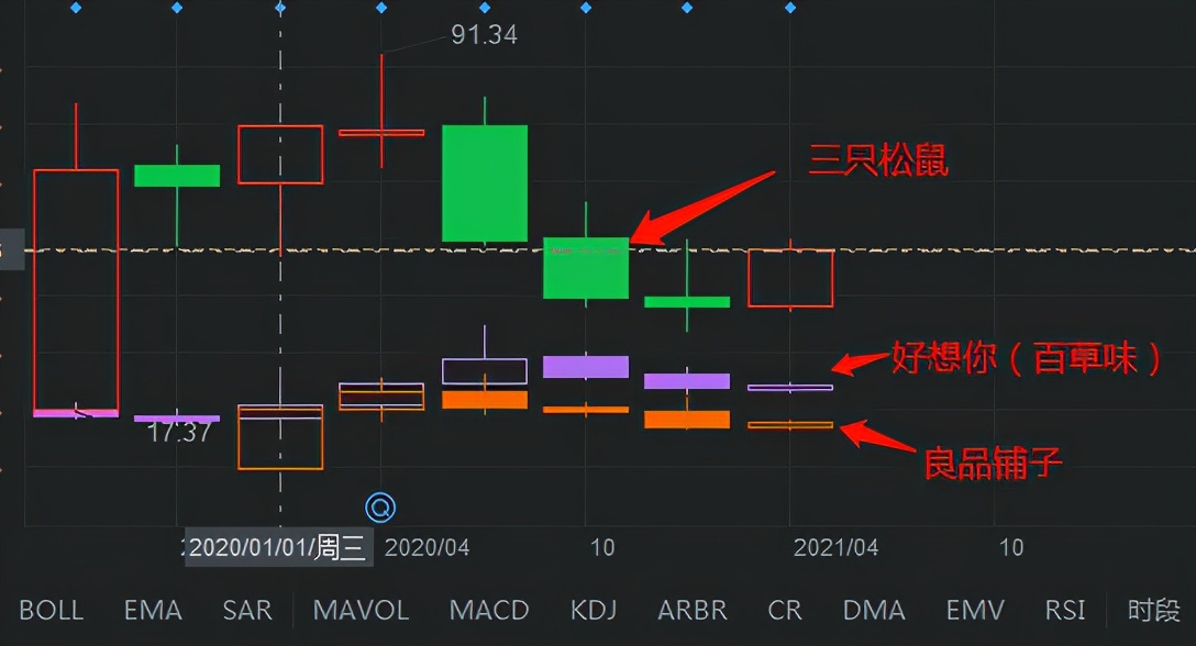 最终表现在股价上,是零食三巨头上市以来的股价走势逐渐走低。