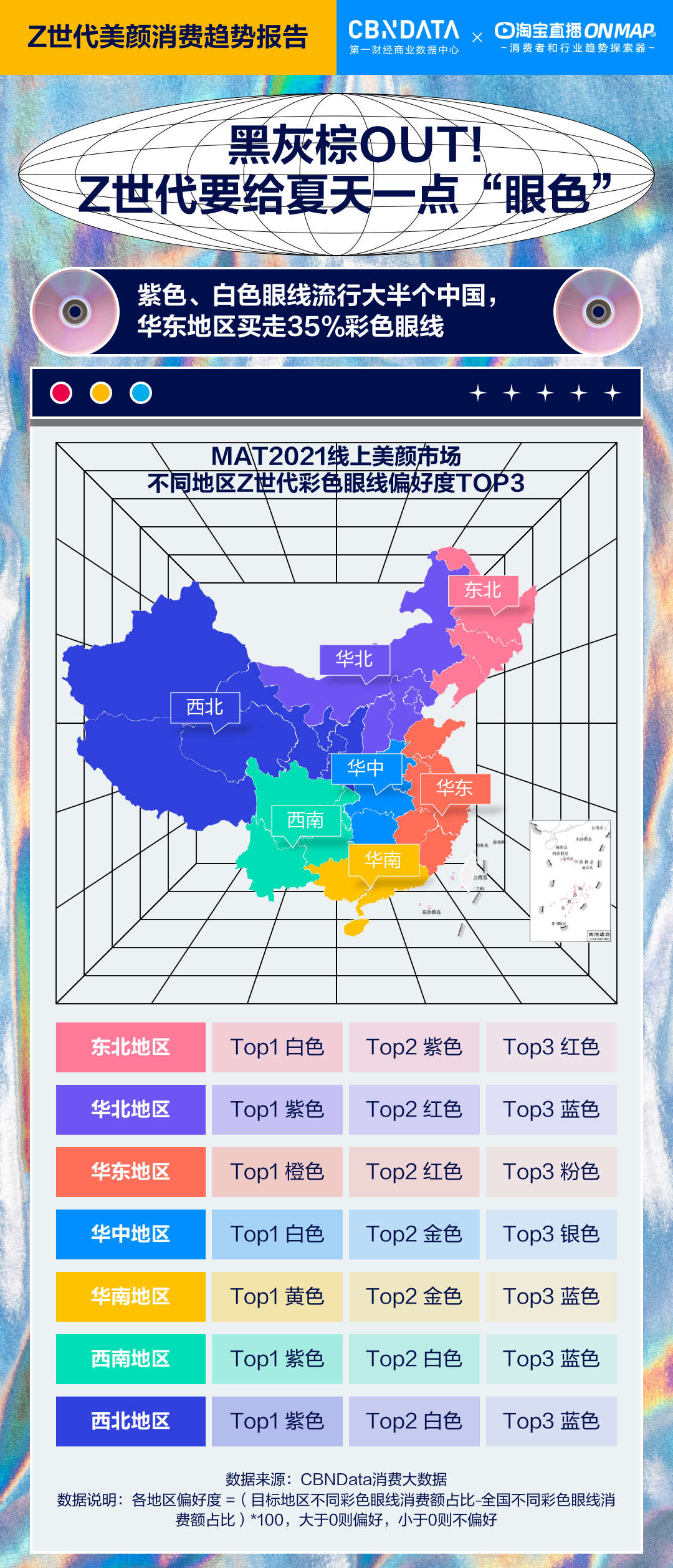 出门在外口罩必不可少,口红可以不涂,但是眼妆不能不画。小小一笔就能增添趣味,彩色眼线已成为爆款眼妆单品,其中,红白两色眼线笔近一年来销量均已突破百万。在经济能力领先全国的华东地区,消费者对彩色眼线情有独钟,买走了约35%的彩色眼线笔。