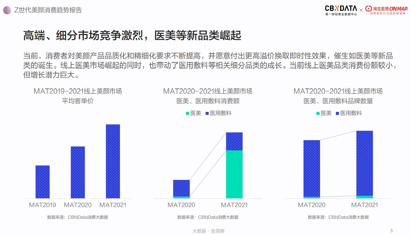 抗老才是爱美人士的终生大事,Z世代勤于抗老已经不是秘密。为了追求更快、更彻底的护肤效果,Z世代开始追捧微电流、射频、电脉冲等家用美容仪器和医学美容,医美市场的大幅增长还带动了医用辅料在护肤市场中的流行。