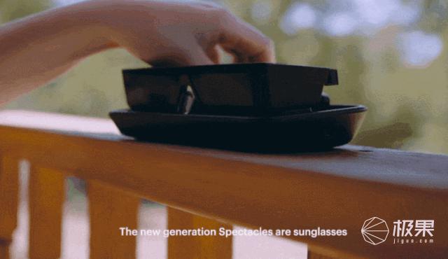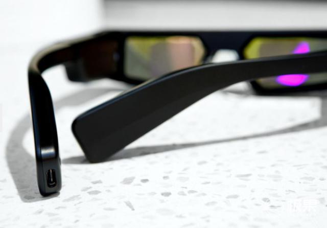 在 Spectacles 的左边镜框末端还设有接口,可用于充电、传输数据。并且外框有磁吸充电功能,可以作为充电支架使用。