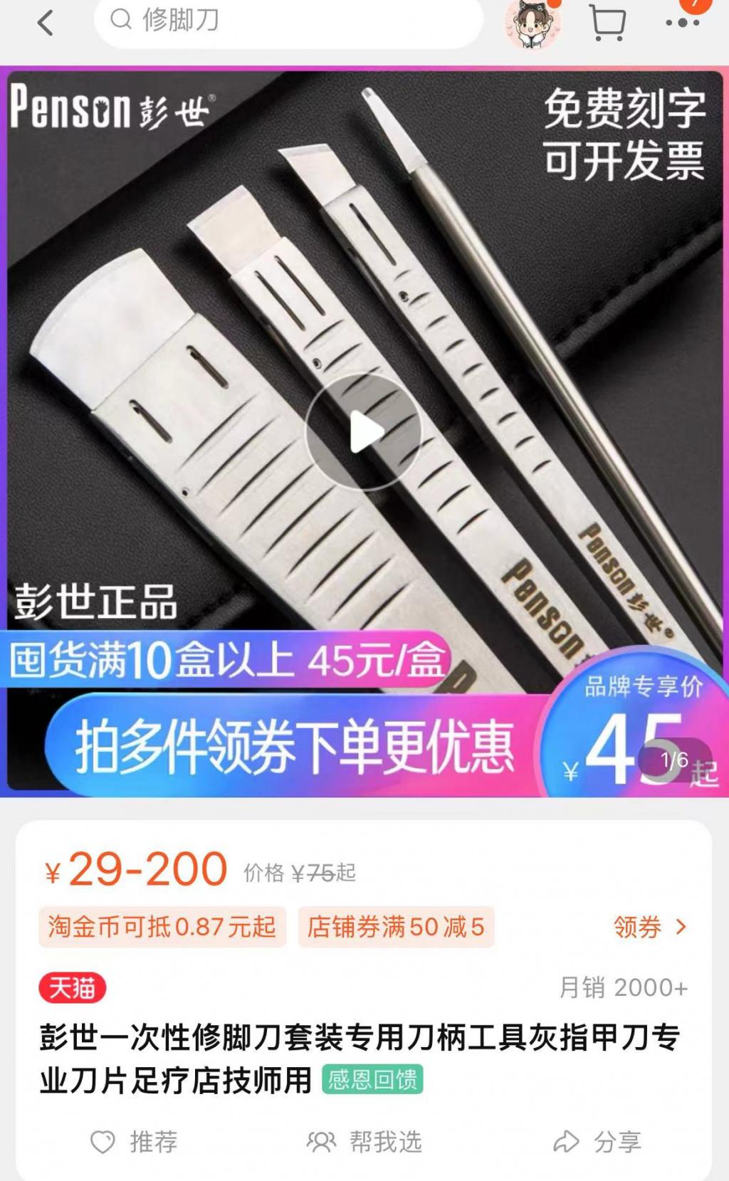 像彭世淘宝店里的一把一次性修脚刀,每月至少能有 6 万以上的销售额。