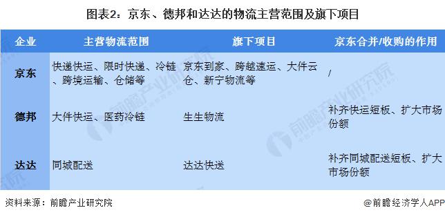 京东物流在京邦达形成前所涉及的业务范围较广,其通过收购、战略投资、股权收购等方式进入快递快运、限时快递、冷链、跨境运输、仓储等业务领域 ; 德邦和达达则分别专注在大件快运和同城配送领域,京东收购德邦和达达是为了补齐在快运和同城配送的短板,并扩大京东在物流领域的市场。