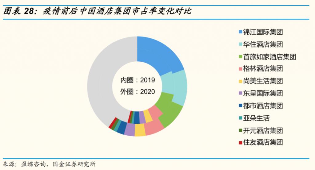 就数据来看,2020 年,中国经济型、中端、高端及奢华酒店的连锁化率分别为 25%、40%、32% 和 53% [ 4 ] 。参考海外经验,在经济下行周期,抗风险能力差的单体酒店加速出清,龙头集团趁势扫货,酒店集团集中度进一步提升。