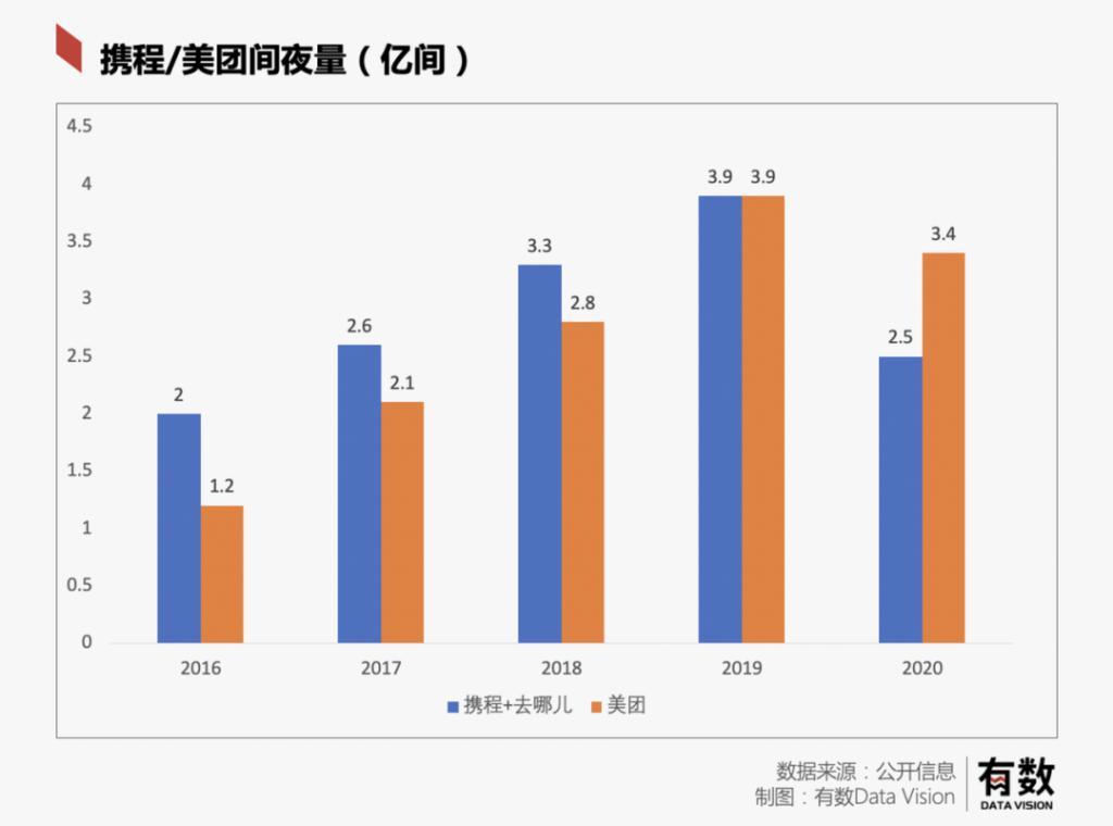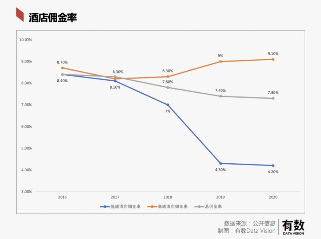 据测算,美团平均每卖出一晚住宿佣金收入仅为 13.3 元,而携程的是 42.6 元 [ 8 ] 。