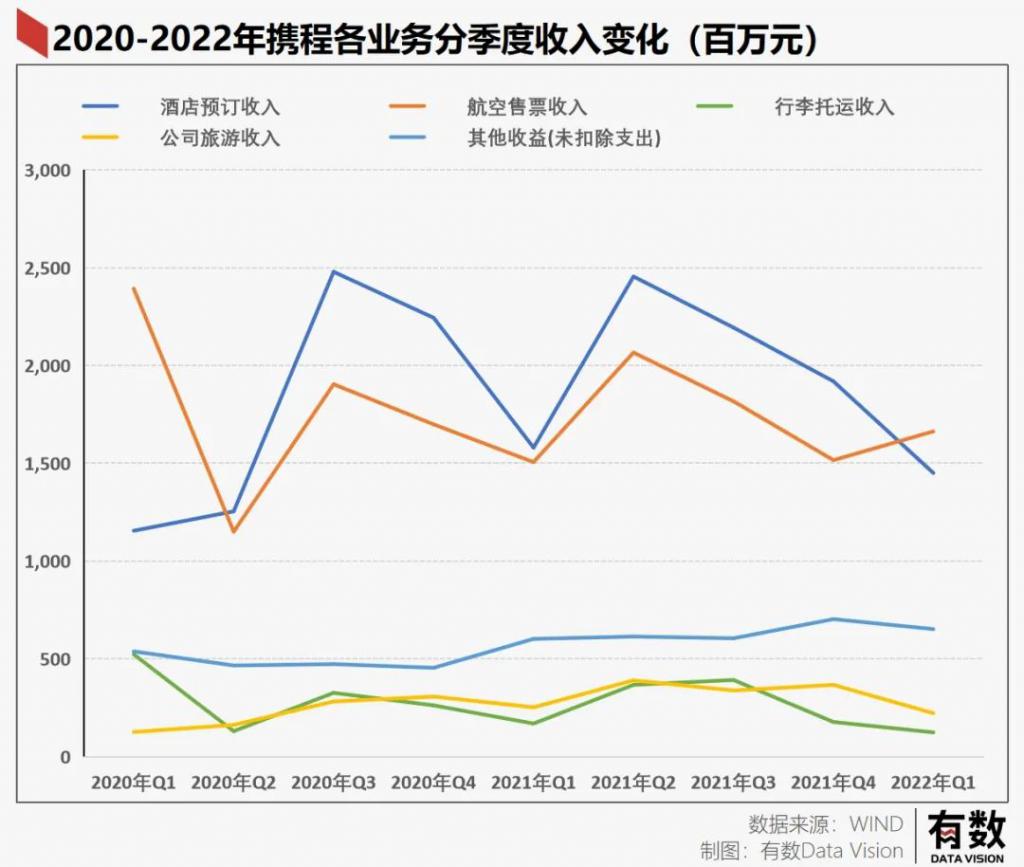 过去十多年里,携程的打法一直是这套 " 机票拉新,酒店变现 ",两者唇齿相依。但到了 2022 年一季度,酒店和机票两兄弟的业绩表现,开始脱钩了。