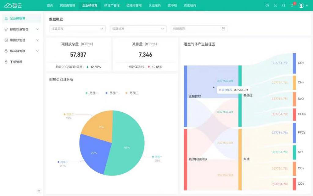 据介绍," 碳云 " 平台上,涵盖了企业碳核算、产品碳足迹、供应链碳管理、碳资产管理、碳账户平台、在线认证、碳中和服务等功能模块。使用 " 碳云 " 的企业,可以形成 " 数据采集 - 核算 - 分析 - 目标制定与路径规划 - 碳减排实施 - 碳中和 " 的碳管理闭环,碳管理更高效。