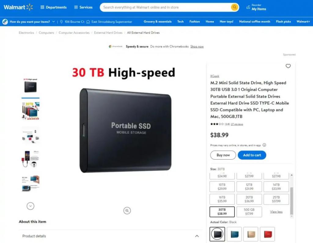 30TB 的移动硬盘,卖 29 美元(约合人民币 196 元)。