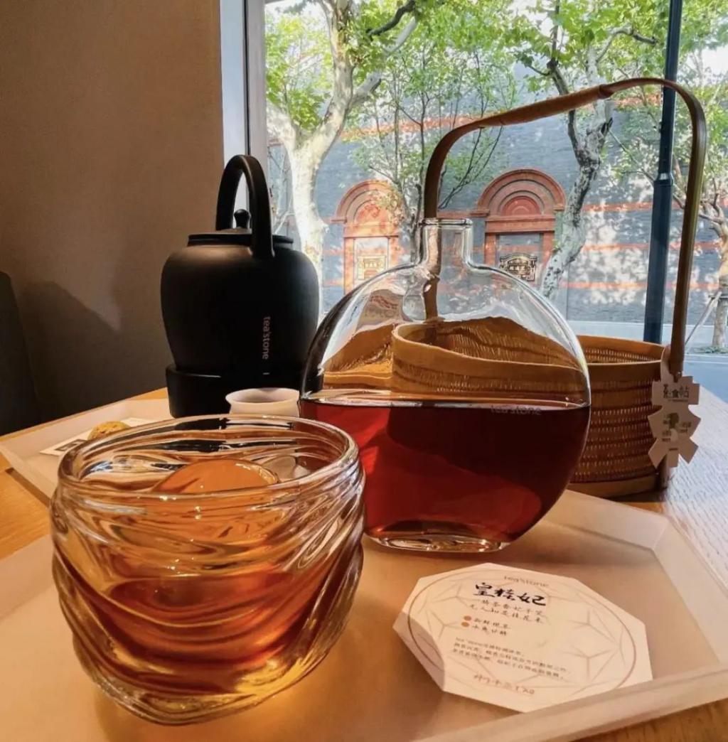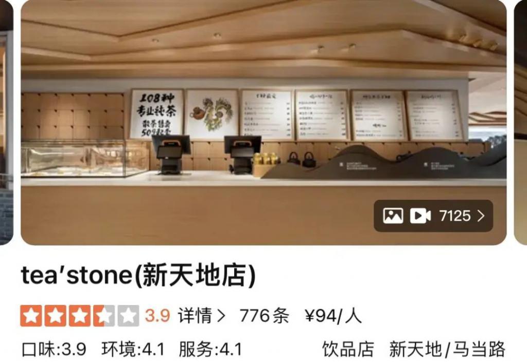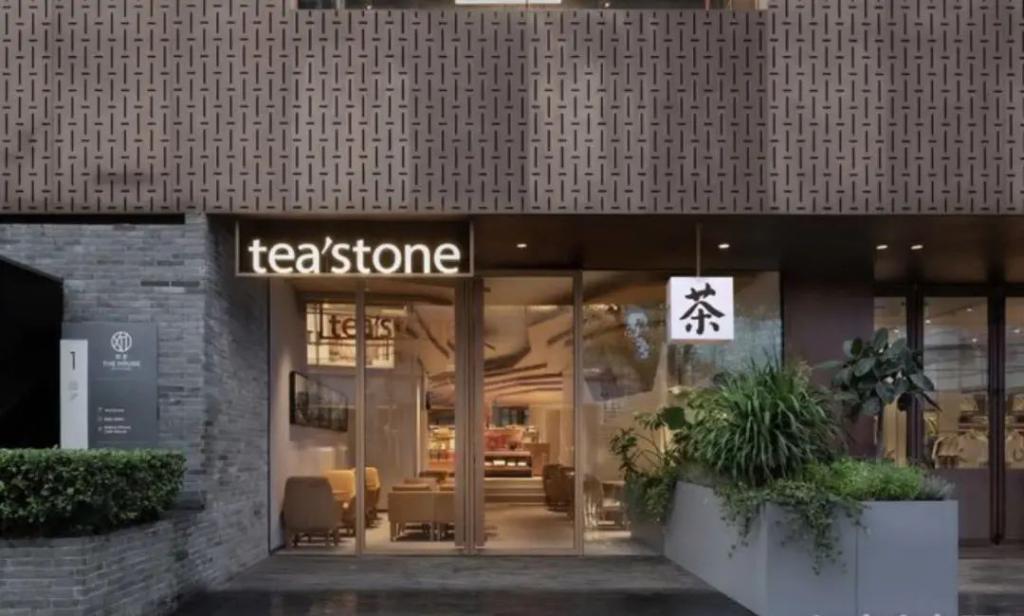 于是对标星巴克这种提供一个空间的网红店 Tea's tone 出现了,它 2018 年从深圳起家,创始人分别从清华美院和中国传媒大学毕业,还将分店开进了上海的潮流聚集地——新天地。