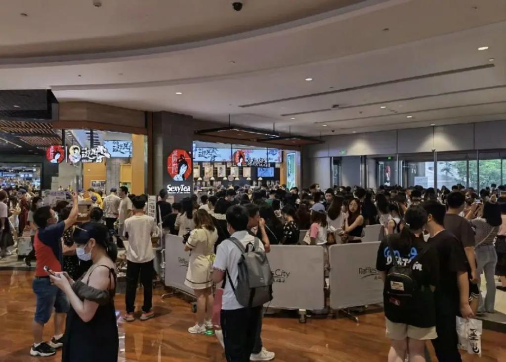 在长沙最出名的街道五一广场附近,仅一个路口就开出五家店,并且家家要排队。这种热度把前网红茶饮之王喜茶,至少在长沙是吊打的水平。