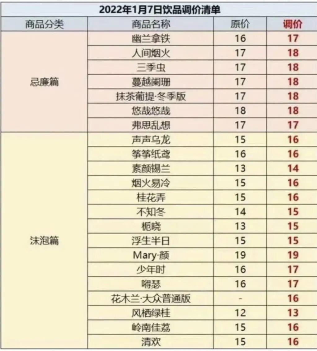 △图:茶颜涨价一览图 源:网络