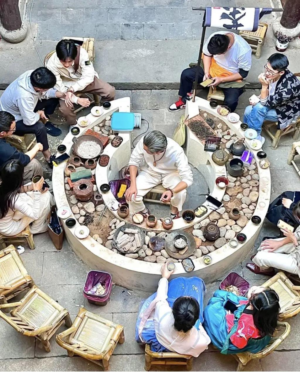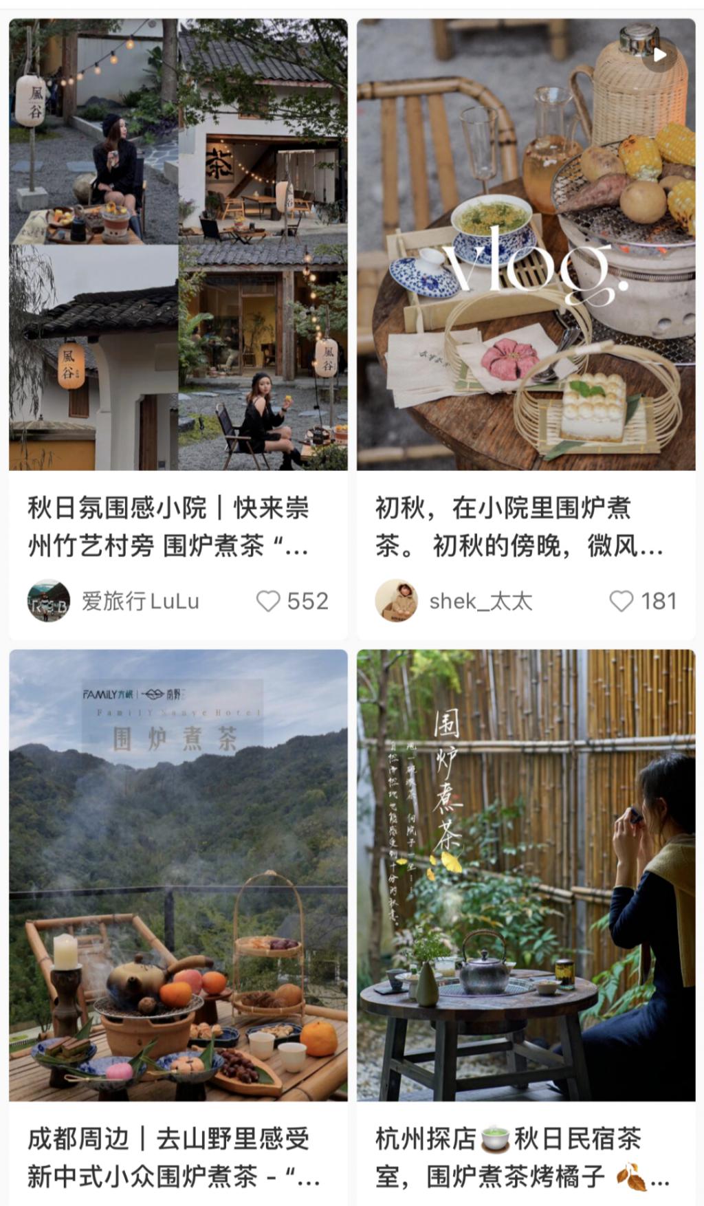 对于茶馆和一些民宿来说,这样提供围炉煮茶的成本极低,上百元就可以增加噱头,提高客单价,甚至还能收获一众自来水在社交平台上曝光流量,简直一本万利。