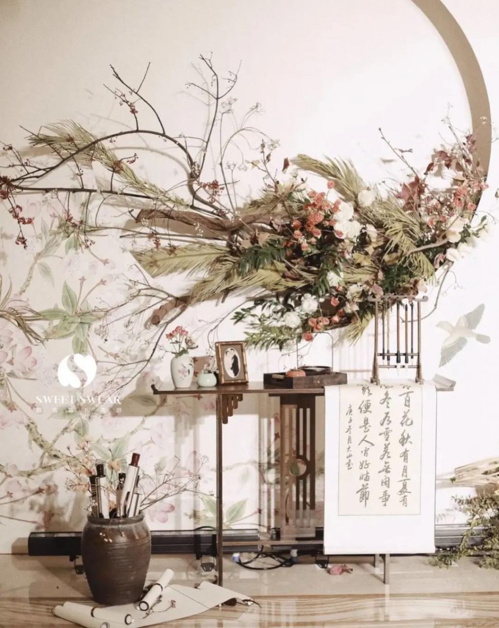△图:现在正当红的新中式婚礼迎宾区