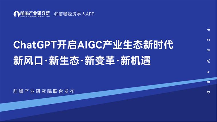 为了更好洞察产业机遇、把脉市场风向,近日,前瞻产业研究院重磅发布了《ChatGPT 开启 AIGC 产业生态新时代》(以下简称《报告》),旨在提供对人工智能以及 AIGC 产业发展情况概述,主要包括新风口、新生态、新变革、新机遇等进行前瞻性判断和分析,以下为《报告》的一些节选内容: