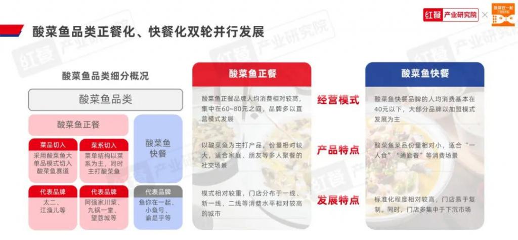 竞争格局方面,经过多年发展,目前酸菜鱼品类已基本完成正餐化和快餐化的赛道细分。