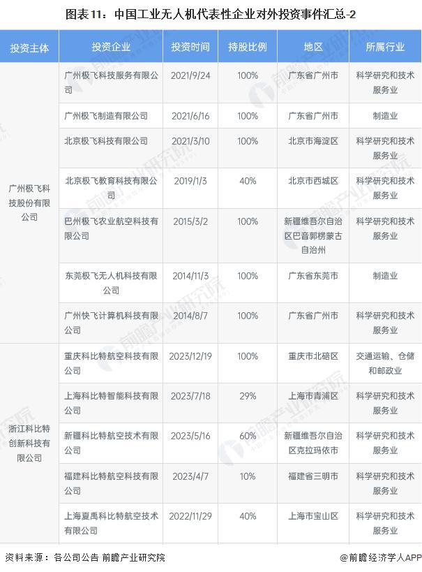 从工业无人机代表性企业近年来的对外投资赛道情况可以看出,投资科学研究和技术服务业、制造业占据多数,工业无人机代表性企业以投资布局相关赛道扩展产业规模、加速无人机产品的更新迭代。