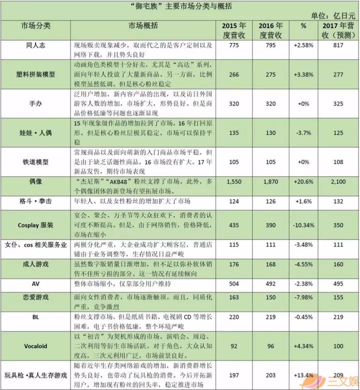 日本偶像市场年产值2100亿 15个宅文化细分领域行情如何?