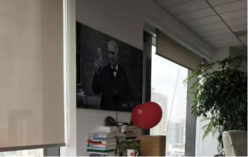 窗口一侧的墙上挂着爱迪生拿着电灯泡的黑白照片。这张照片是2016年底才添置的,爱迪生发明了电灯,人类进入了电气时代。白鸦期许有赞云等一系列产品的发布,能带领整个行业进入新零售时代。