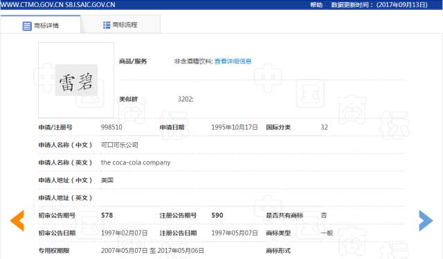 不过作为山寨的雪碧饮料,雷碧还真不是无中生有,根据商标网的信息显示:“雷碧”这个商标的所有者,真的就是可口可乐!对,你没看错,就是来自美国的那个可口可乐公司。