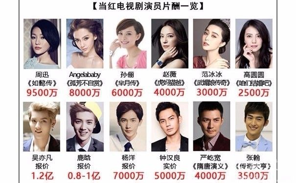 例如现在在女明星片酬中位居第二的Angelababy,靠《奔跑吧兄弟》走红,迅速跻身第一梯队,片酬高达8000万。而片酬与之相当的,除了周迅、孙俪两位实力派、范冰冰、赵丽颖、杨幂、迪丽热巴等都没有过硬的演技,但仍拿着高额的片酬。