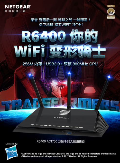如今,路由界的“变形骑士”美国网件R6400不负众望,顺势而来,致敬变形金刚。汽车人附体,包装霸气侧漏。新战场,绿色护航,捍卫WiFi净土,R6400与每一个变形金刚的爱好者一起共造英雄梦。