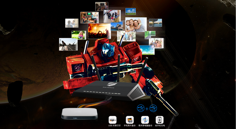 作为知名的路由品牌美国网件NETGEAR推出了多款备受赞誉的路由,性能彪悍的夜鹰系列,大覆盖的Orbi多路由系统。其依托于美式科技,设计,安全,智能以及耐用的美式制造标准,始终从用户角度出发,为用户提供所需的路由。孩之宝,美国知名玩具公司,旗下拥有变形金刚、特种部队、星球大战等多个知名品牌。二者携手,让性能和情怀并重,打造专属与变形金刚迷的无线路由器,致敬经典。