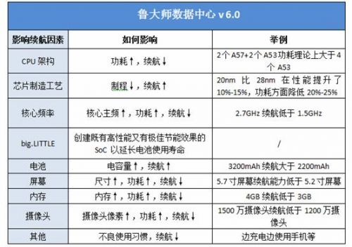 既然续航如此重要,那么,影响续航能力的主要因素有哪些呢?首先来看鲁大师数据中心提供的一份数据: