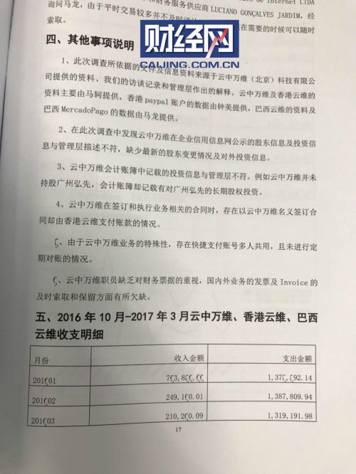 另外,据第三方审计调查,云中万维在签订和执行业务相关合同时,存在以云中万维名义签订合同却以香港云维支付账款情况。