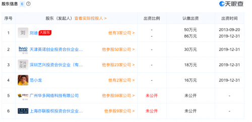 财经网从一份云中万维(北京)有限公司于2014年4月15日签署的一份投资协议发现,范小龙作为股东出资78947元,均有刘迪代持。