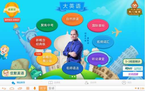 在课程方面,优学派名师辅导班中独家打造了“大英语”、“大语文”、“数理化”三大精品课程学习体系,围绕各学科不同学习内容形成一个闭环,比如英语学习,从小学的自然拼读到中学的聚焦中考全方位帮助学生进行系统完整的学习。孩子遇到学习的各种困难环节,都能找到对应课程进行学习,这种更成体系的学习理念和方法,更能帮助学生高效的取得好成绩。拿其中的《新概念英语青少版》课程来说,由明星外教董默涵与知名培训机构新东方的名师联合授课,让孩子既能和外教一起学地道的发音,告别“哑巴英语”,突破听力难关;又能听新东方名师讲解语法,学会解题技巧,双管齐下,更能有所进步。