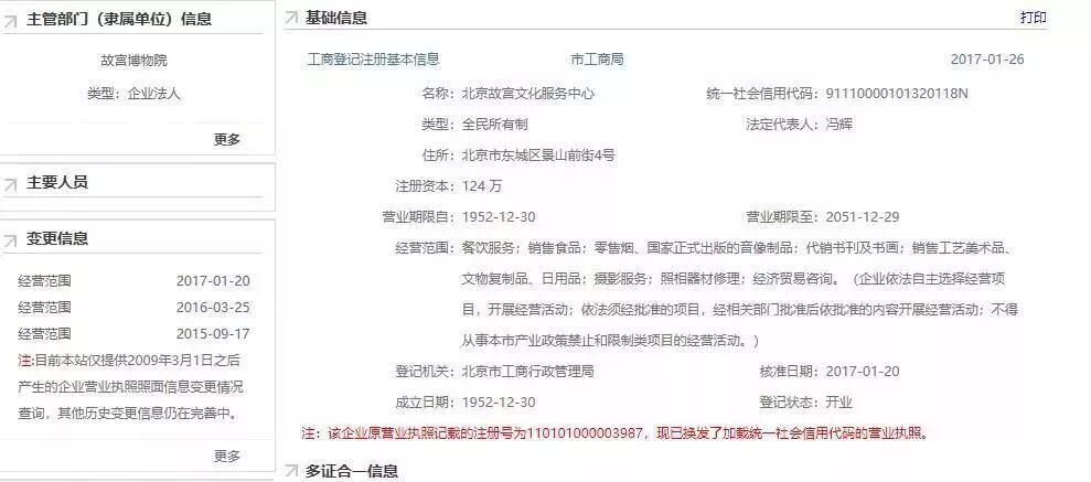 “故宫文化服务中心”的工商信息 图片来自于北京市企业信用信息网