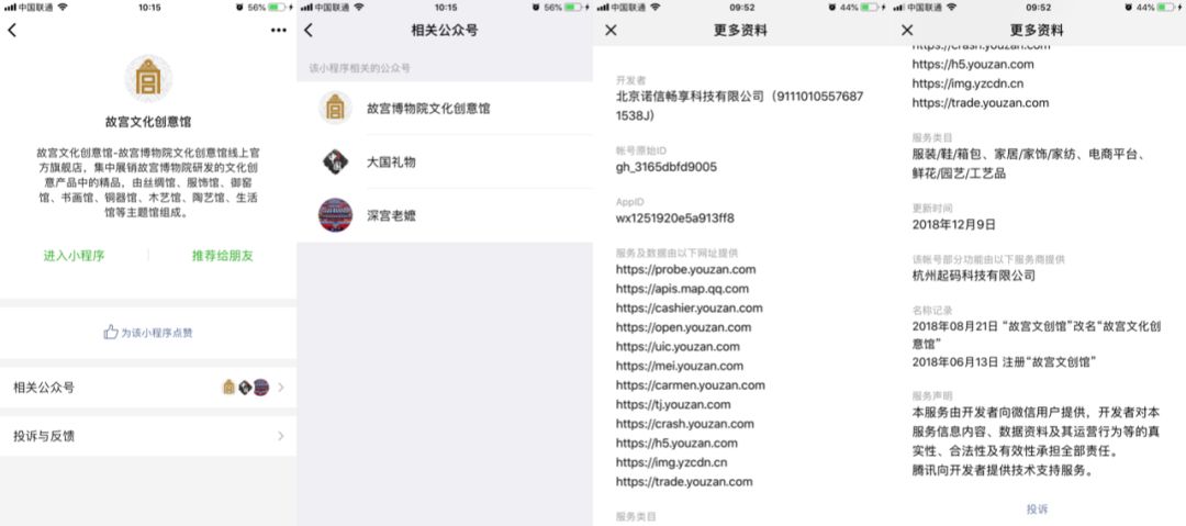 第一批出镜的角色分别是:故宫官方认证公众号、第三方公司认证的小程序、第三方生产厂家、天猫。