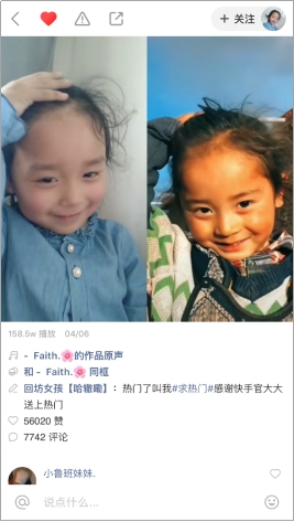 而此次一个藏族小朋友的视频两天即引发60多万条各民族大同框,这在快手尚属首次。有网友评论道:“这是妥妥的各民族团结一家亲啊!”