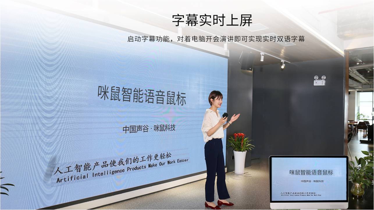 咪鼠智能鼠标S2拥有焕然一新的字幕上屏功能,说什么就显示什么,语音实时转文字,还支持26种语言互译,双语字幕显示。