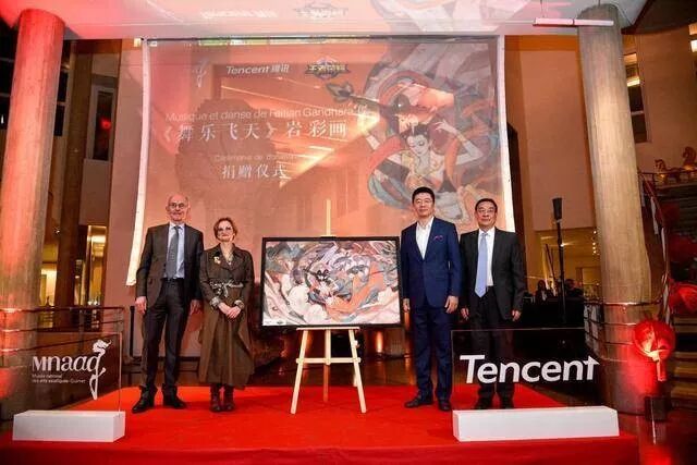 然而这个敦煌的故事还没有停止。后续,由“中国最年轻的造龙师”之称的绘画大家莲羊创作的《王者荣耀》敦煌飞天岩彩画——《舞乐飞天》,被赠予法国国家博物馆联合会,并在吉美国立亚洲艺术博物馆展出。