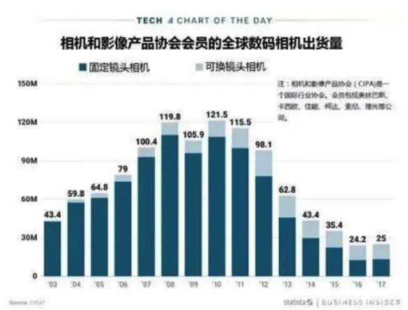 首先这并不代表一个行业对另一个行业的完全灭绝,如摄影领域依然有着为数不少的玩家离不开单反这样的专业器械,智能手机满足的只是大众意义上的照相摄像需求。