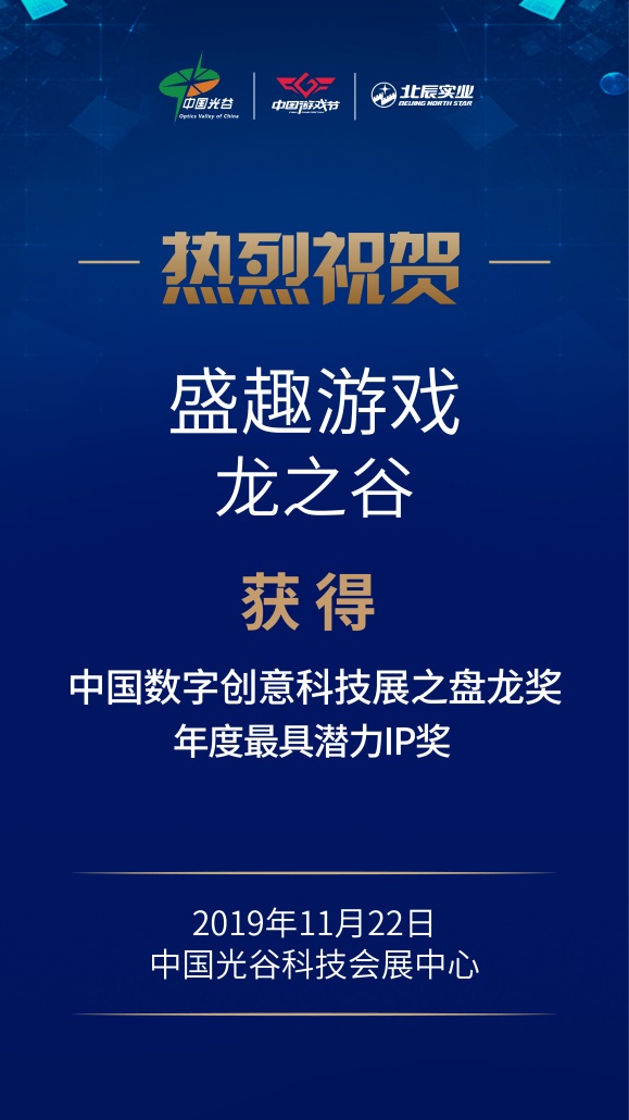 11月22日,盛趣游戏旗下“龙之谷”IP成功获得2019中国数字创意科技产业展之盘龙奖——年度最具潜力IP奖。
