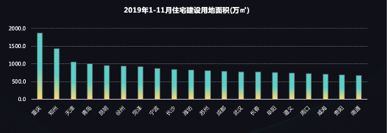 从交易市场大数据来看,全国土地购置面积下行明显,70个大中城市成交价指数平稳增长,新建商品住宅价格指数高于二手住宅价格指数。58安居客房产研究院数据显示,2019年1-11月,重庆成为住宅建设用地出让面积最多的城市,出让面积1868万平方米,其次为郑州、天津、青岛,一线四城并未进入Top20。这表明,新一线城市发展潜力被持续挖掘,人才吸引力也会进一步提升。