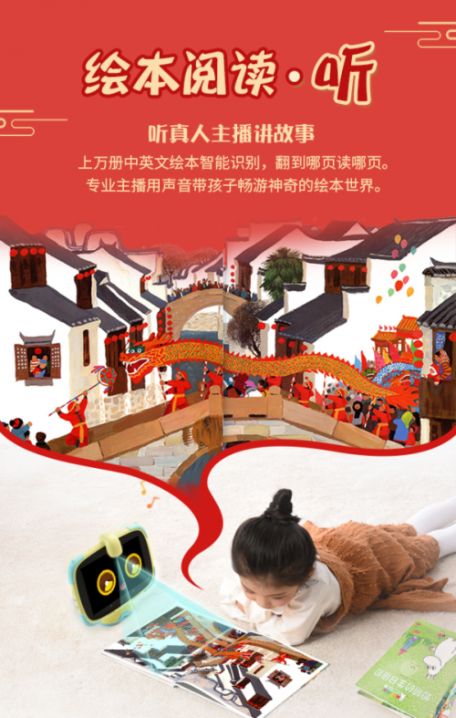 伴学机器人V6精心挑选了上万本中英文绘本,由喜马拉雅专业主播真人讲读,孩子翻到哪页读哪页,指到哪里讲哪里。家长和亲戚朋友聊天时,伴学机器人V6便捷的操作让孩子一个人也能尽情享受绘本的乐趣。孩子自己看绘本,家长放心又省心。