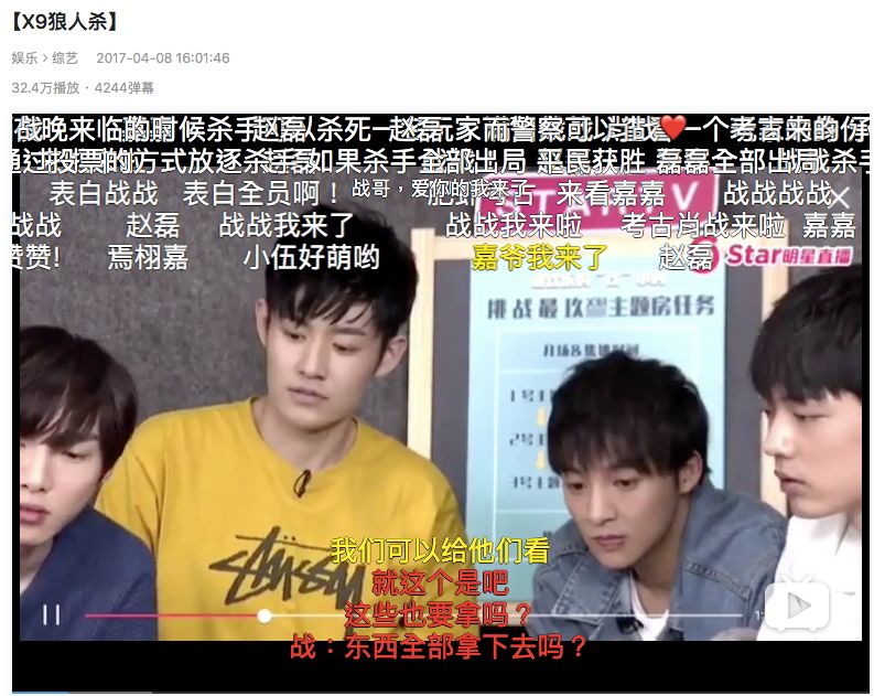 B站上,长达53分钟的《X9狼人杀》播放量超32.4万,《偶像练习生》中7分多钟的狼人杀环节cut播放量也在17.6万。而粉丝自发剪辑的狼人杀相关视频播放量、弹幕数也都相当可观。若能牵手偶像经济,推出以偶像为原型的相关游戏板子、剧本,无疑能带动粉丝线下打卡,撬动粉丝经济。