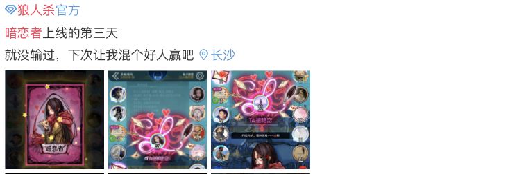 上游,重内容是基础。网易的《狼人杀》手游近期推出了“暗恋者”这一新增角色,在社交平台上反响较好。无论是狼人杀的角色、板子,还是剧本杀的人设、剧本,都需要创作者不断钻研、创新。
