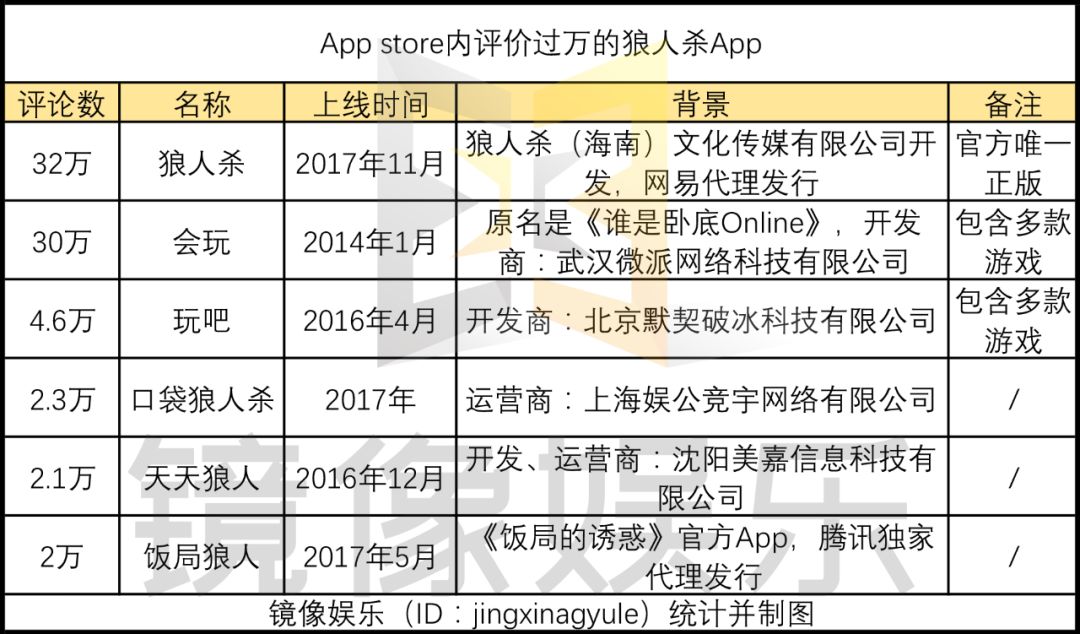 2016年下半年起,国内市场出现了一批狼人杀App。