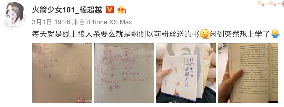 杨超越就自称“每天就是线上狼人杀”,甚至还在微博附上了游戏过程中做的笔记。