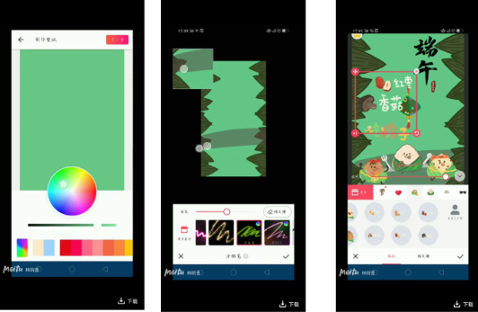 当然,除了以上所有,你也可以使用美图秀秀的涂鸦和贴纸功能,制作一张专属于自己的端午壁纸,也算是一种快乐过端午的方式。在美图秀秀选择颜色建立壁纸,使用美图秀秀编辑里端午定制的马赛克、涂鸦笔,再加入端午系列的贴纸,就可以定制一张属于自己的端午壁纸。