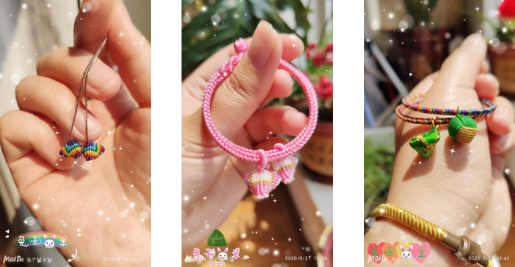 端午除了包粽子、看龙舟,也有其他的创意玩法,美图秀秀用户“叮铛林”(美图ID:1597182527)用一张A5一般大小的纸也包出了可爱的粽子,简单易学,十分推荐给对包粽子没信心又想自己尝试的选手。更有手巧者,“兔子羊”(美图ID:1567829781)晒出了自己收编的粽子耳环和手环。